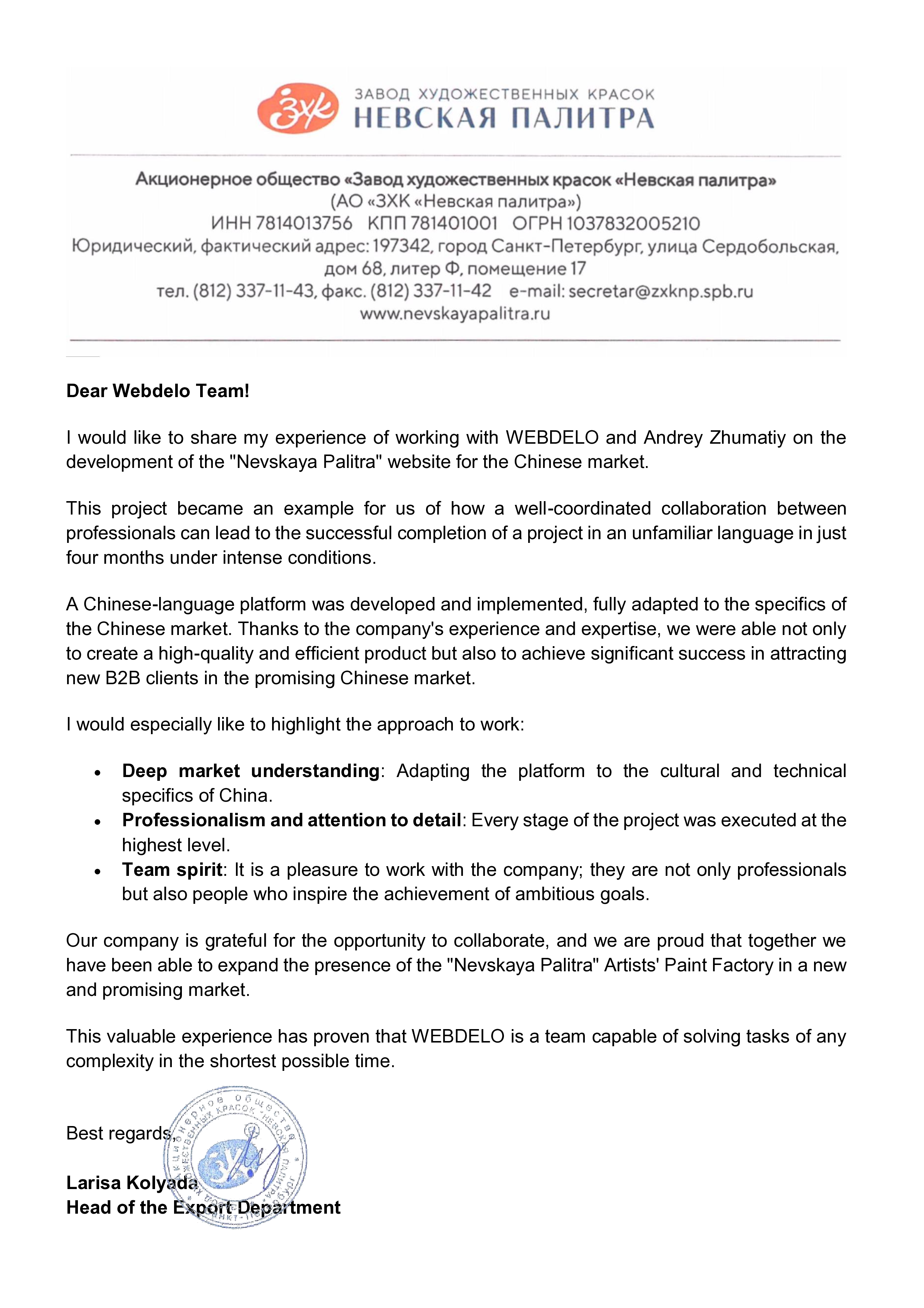 My name is Anna Klenina, and I'm here to say thank you to Andrei Jumatii and his Webdelo team for developing a Chinese website for the wide audience of China with the greatest economic result that can be ever achieved.